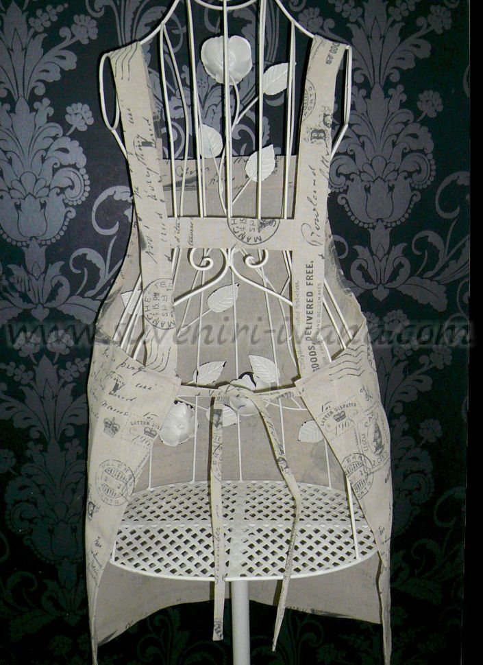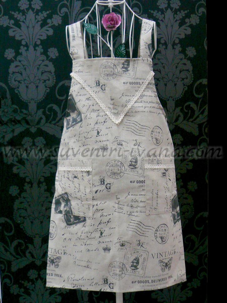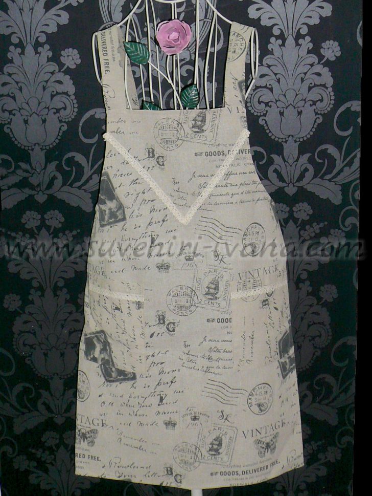 Престилка за готвене и други домакински дейности от плат в стил винтидж и памучна дантела за декорация. Размери 90,0 х 80,0 см.