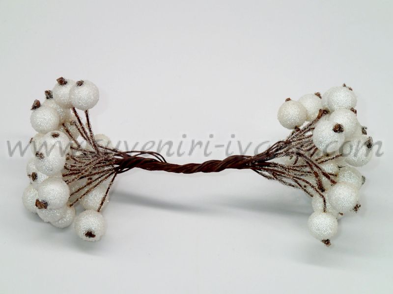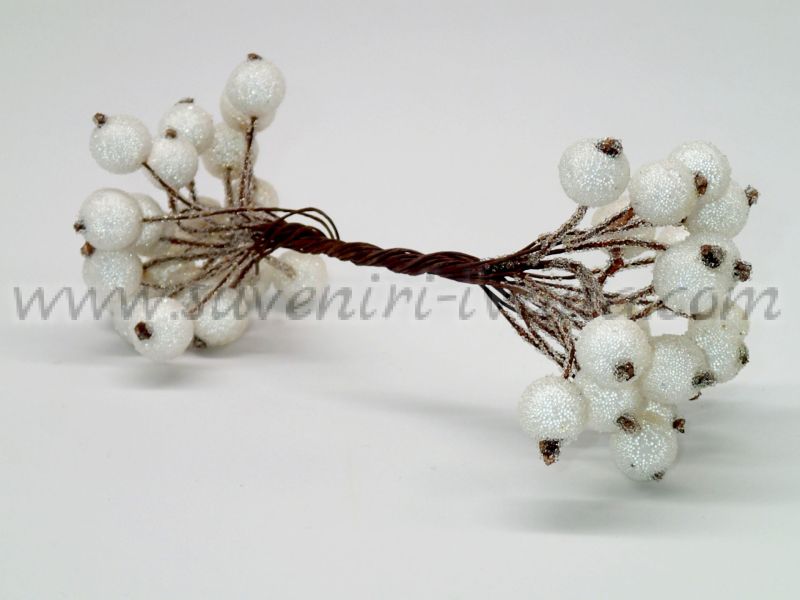 Снопче бели захарни топчета, тичинки за декорация с дължина 15,0 см. Подходящи за декорация на коледни елхи, венци и други.