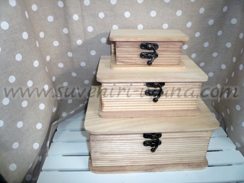 Кутиите са подходящи за декориране и обработване чрез прилагане на различни арт техники върху дърво, декупаж и други. Предлагат се в комплект от три броя.