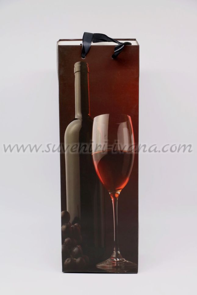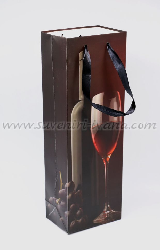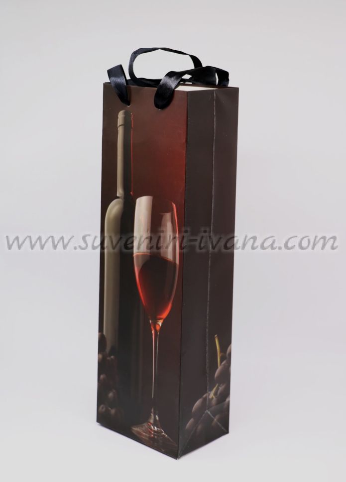 Опаковъчна торбичка за бутилки с цветен принт от двете страни с размери 12,0 х 36,0 х 8,0 см. Дръжките са от текстил в черен цвят. Тези торбички са чудесна опаковка за подарък бутилка вино, както и за всякакви други бутилки.