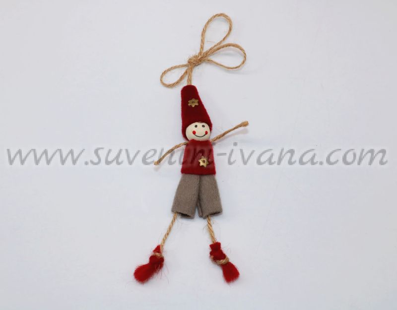 Коледно човече за декорация, момченце, ръчна изработка. Тези ръчно изработени фигурки имат връвчица за закачане и са подходящи за украса на коледната елха. Размери 11,0 х 2,5 см.